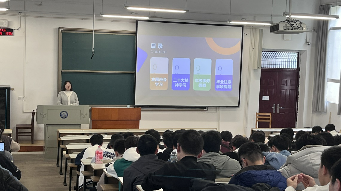 在日常年级事务部分,杨老师围绕日常防疫、水电安全、健康作息以及每日平安报备等事宜突出强调,提醒同学们在本科最后一学期的生活中加强自我管理。蔺建国老师作为新任本科生2019级兼职辅导员首先向同学们做了自我介绍,然后围绕“大学之道,在明明德,在亲民,在止于至善”并结合自身经历,分享了他对于提升综合素质的理解以及对大四学生的建议,期望同学们能更好利用永利集团3044官网欢迎您的综合平台,充盈内心,提升眼界。