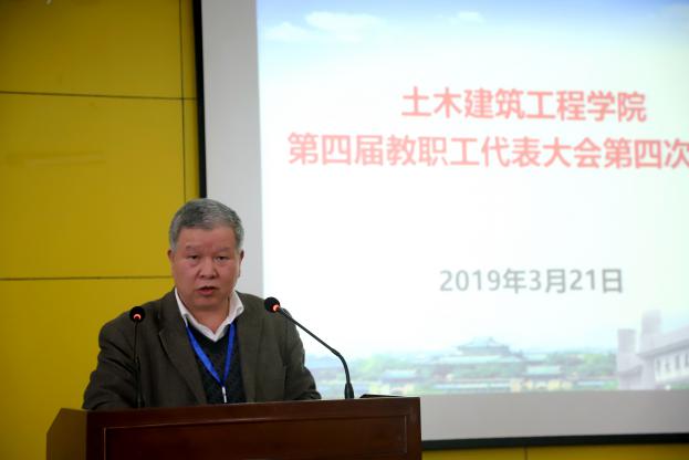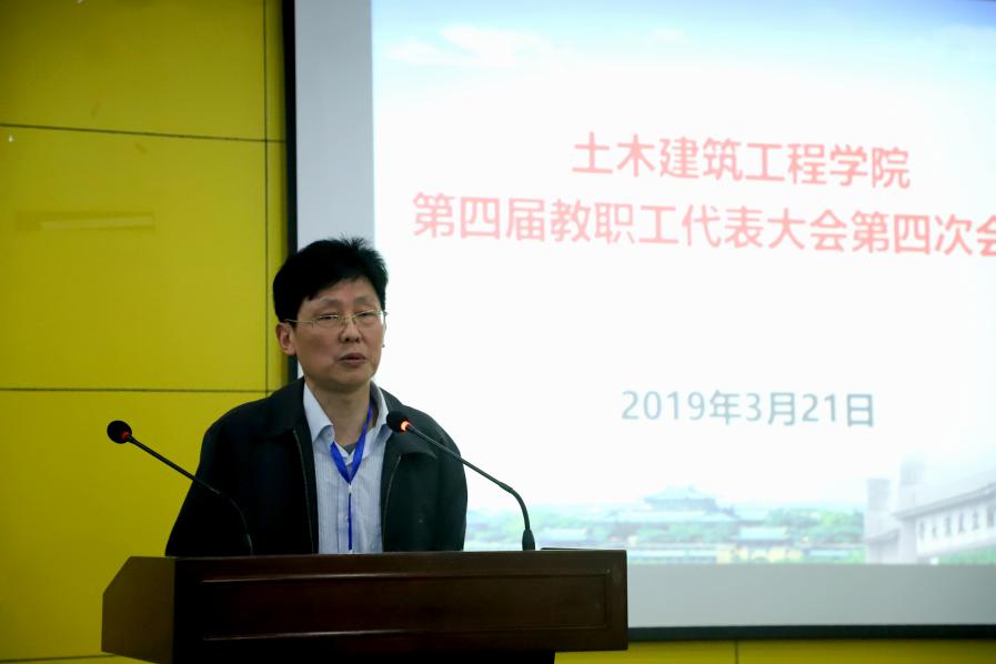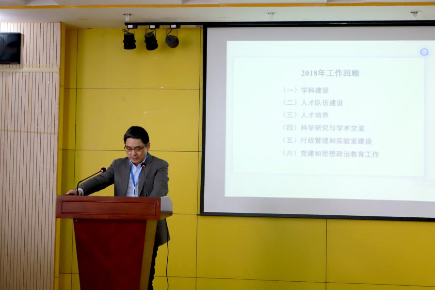 院长刘泉声教授首先作《学院工作报告》,从学科建设、人才引进与人事制度改革、本科生与研究生培养、科学研究与学术交流、行政管理与实验室建设、党建和思想政治教育工作等六个方面对学院2018年的工作进行了全面细致的回顾,并提出2019年学院发展的工作计划。刘院长强调,2019年是深入贯彻落实全国教育大会精神和学校党代会总体部署的开局之年,也是学院奋力推进“十三五”规划实施的攻坚之年,学院将认真落实学校工作要求,继续坚持创新发展、内涵发展、进一步强化人才意识、质量意识和标志性成果意识,不断加强人才队伍建设和学科建设、提升科学研究实力、提高人才培养质量,全面推进落实各项工作,促进学院又快又好发展。