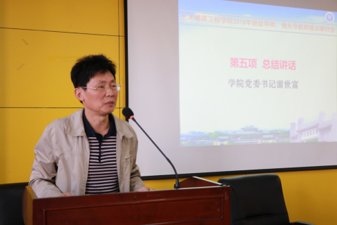 学院党委书记雷世富在总结讲话中充分肯定了班级导师和烛光导航师这两支队伍组建以来对学院做出的贡献,为了进一步推动班级导师、烛光导航师工程,雷书记提出了三点明确要求:第一,提高认识,增强自身责任感,真正做到“导心、导学、导航”。第二,加强学习,注重工作方式方法。一是做好基础工作,充分了解学生情况;二是突破重点工作,选好班干团干队伍;三是抓住难点工作,关注学风学业问题。第三,各个队伍密切配合,分工明确。班级导师、烛光导航师和辅导员三支队伍要齐心协力,共同服务于学生成长成才。雷书记的要求为下一步的工作指明了方向,也激发了大家的热情。
