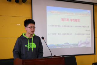 “赠人玫瑰,收留余香”,老师们的关爱也收到来自同学们的真情点赞,2015级杨湘娟、2016级刘昱两位同学分别以自己的班级导师尹颢、烛光导航师刘泉声老师为代表,点赞学院班级导师和烛光导航师的悉心指导和循循善诱,点赞他们治学为人的榜样力量,也点赞学院班级导师-烛光导航师-辅导员-授课教师的全员育人制度。两位学生的发言情真意切,展现出学生们对于学院老师的浓浓感激之情。